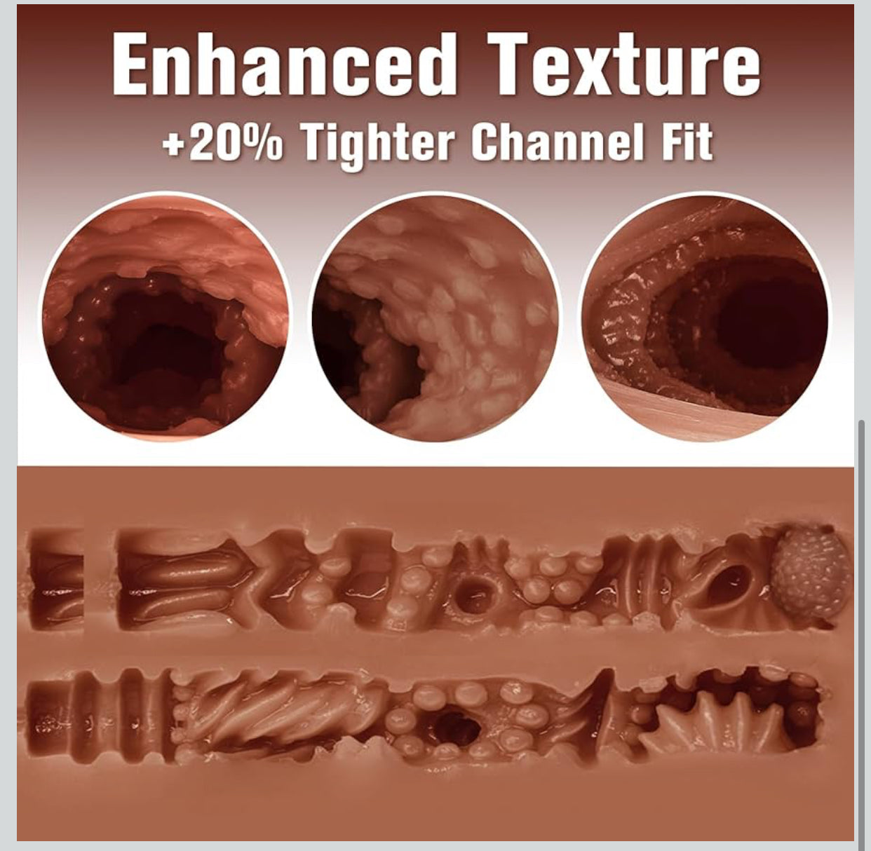 - 3D Lifelike Texture Male Masturbator: This male stroker has up to 5.12 in of insertable length, the adult toy come with realistic anal and vaginal channels, with lifelike textures and contours inside to provide an authentic experience